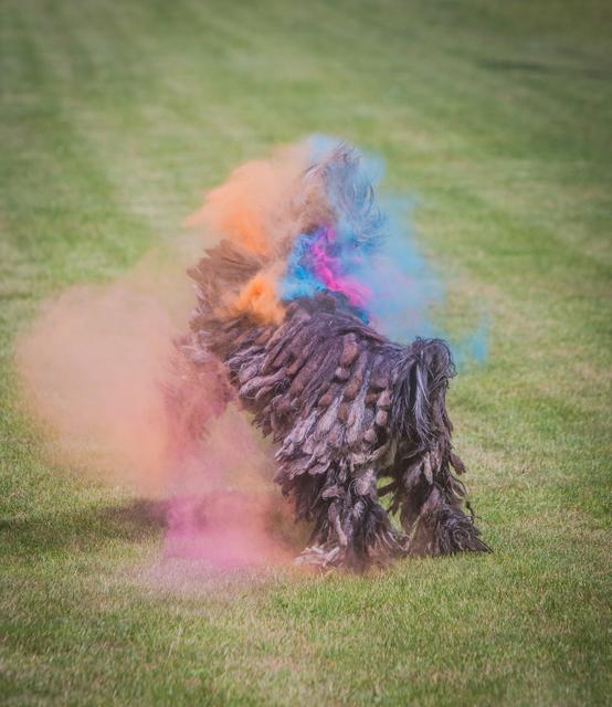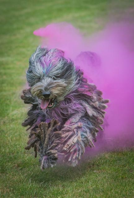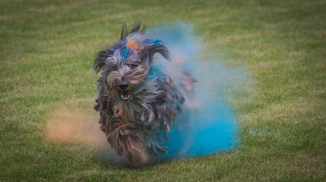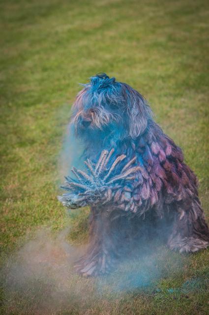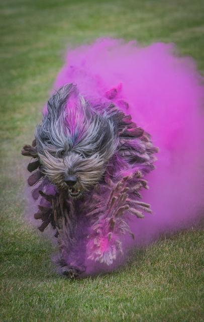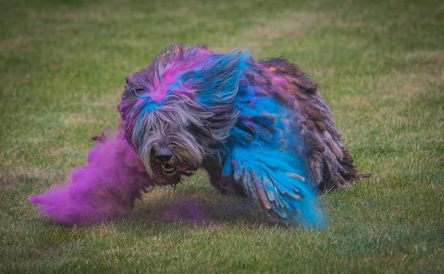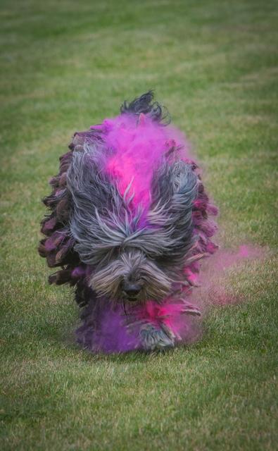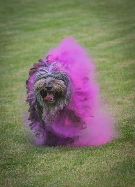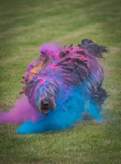 Farbpulver bewerfen. Holi Dogs – Farbpulver und Hunde. O.k.