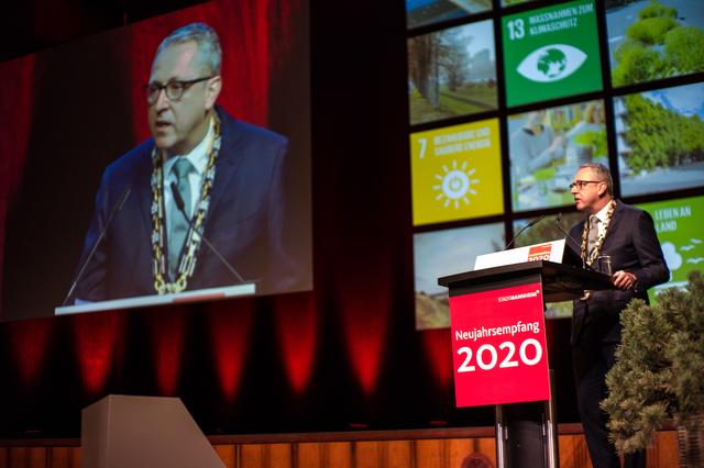"Es geht um einen einfachen Gedanken, der auf Dauer Bestand haben soll: Wir sollen so handeln, dass wir die Welt mit genauso vielen – oder in unserer Situation mehr – Chancen an die nächste Generation übergeben als wir sie vorgefunden haben“, sagte der Oberbürgermeister in seiner Neujahrsansprache. „Die Idee der Nachhaltigkeit ist auch politisch die richtige Antwort auf die Klimakrise, weil sie Spaltung vermeidet. Nachhaltigkeit bedeutet, dass sozialer Zusammenhalt, wirtschaftliche Perspektiven und Ökologie zusammengedacht werden müsse", betonte Kurz, der auch den neuen Markenauftritt der Bundesgartenschau 2023 vorstellte. Das Layout und das Logo sollen fortan für die BUGA 2023 werben. „Wie steht es um die Erde und die Menschen? Planetary Health – ein umfassendes Gesundheitskonzept“ war der Titel der Festrede der Ärztin und Epidemologin Prof. Dr. Dr. Sabine Gabrysch. ps