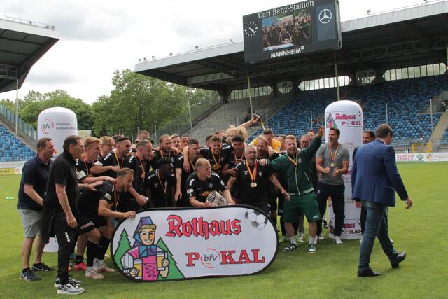 - Der SV Waldhof Mannheim hat das Endspiel vom badischen Verbandspokal-Finale um den bfv-Rothaus-Pokal mit 3:0 gewonnen (Foto Michael Sonnick)