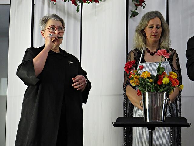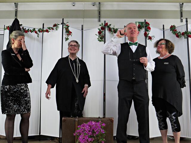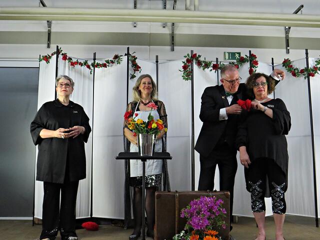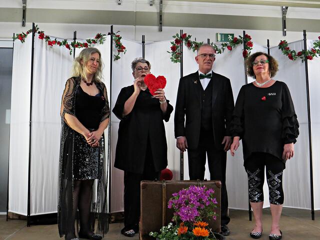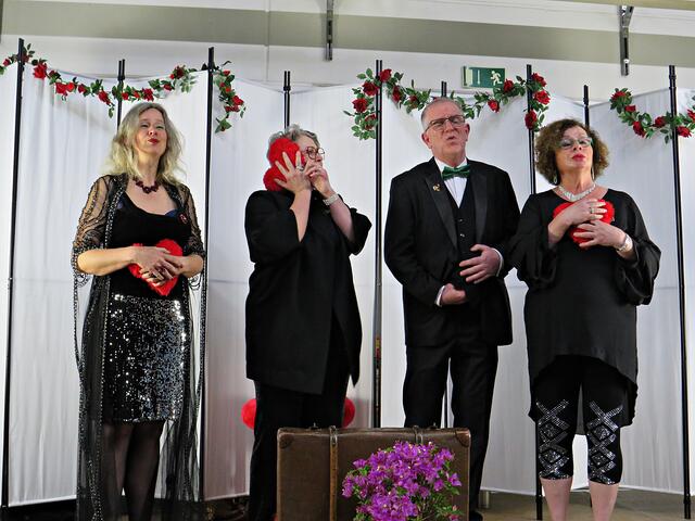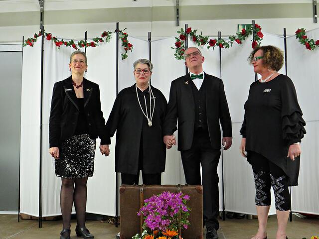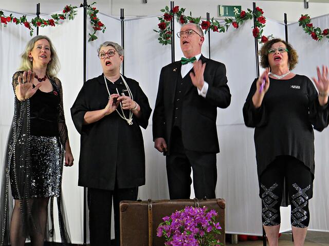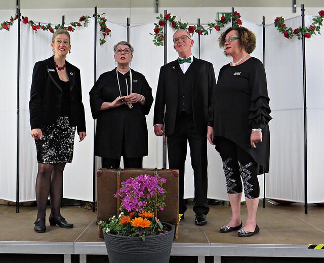 Fingerfood und Getränke standen bereits ab 18 Uhr bereit. Der ab 1. Juli amtierende Präsident des Rotary Clubs Limburgerhof/Vorderpfalz Markus Reinhard sprach ein paar einführende Worte und um 19 Uhr betrat das elegant gekleidete Quartett mit Susanne Christensen (Lead), Helena Pfaff-Vanecek (Tenor), Susanne Weber (Bariton) und Rainer Hartwig (Bass) die liebevoll dekorierte Bühne.