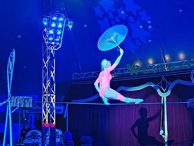 Lachen-Speyerdorf. Nach vielen Jahren zog es mich am 7. Januar in den Circus Manuel Weisheit, der als reines Familienunternehmen auftritt und die letzten beiden Corona-Jahre mangels Auftritte nichts zu lachen hatte. Umso mehr freut sich die ganze Familie, dass sie endlich wieder auftreten darf, wenn auch unter den bekannten 2G-Bedingungen. Zwischen den einzelnen Familien vorwiegend mit Kindern und Einzelbesuchern war genug Platz und viele behielten sogar ihre Masken während der Vorstellung auf. Bevor man es sich im gut beheizten Zuschauerraum bequem machte, wurde sich noch mit Zuckerwatte, Popcorn und anderen süßen Verführungen eingedeckt. Die 15-Uhr-Vorstellung auf dem Stammplatz in der Lilienthalstraße war sozusagen ausverkauft.