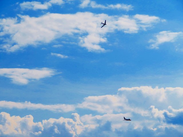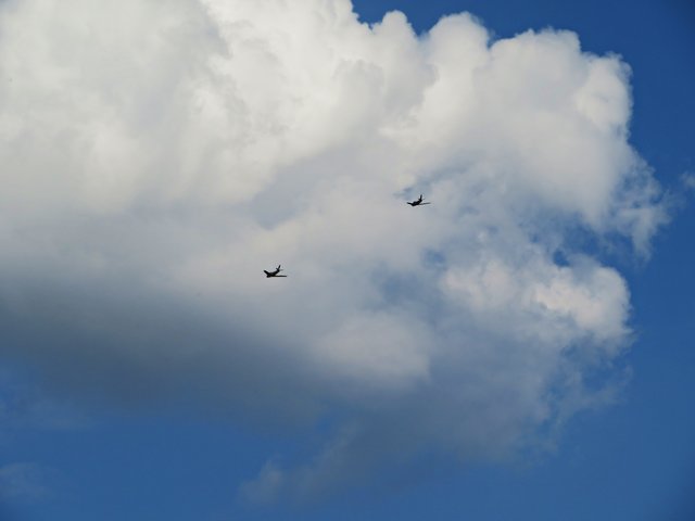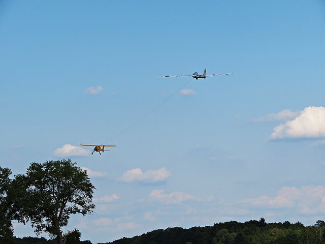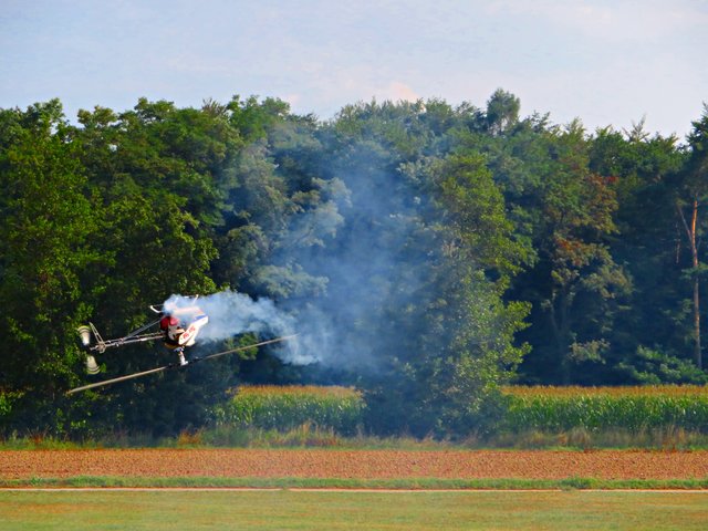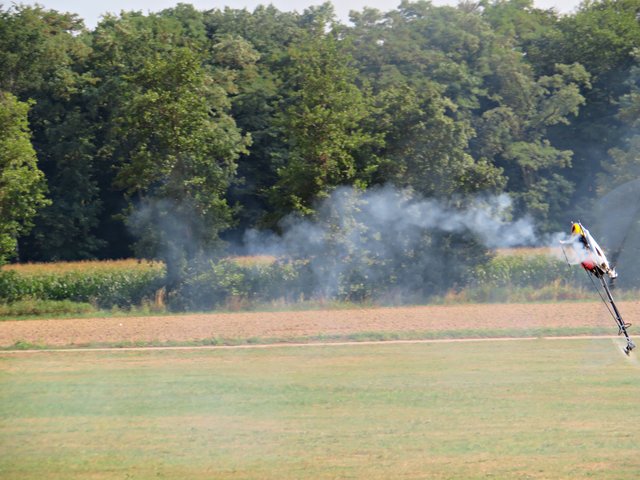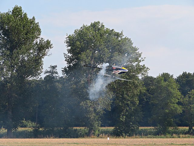 Es folgte ein 3D-Kunstflug mit zwei Helikoptern, die waghalsige Kunststücke vollführten und viel Rauch abließen. In einer Höhe von 460 Metern sah man ein Schleppflugzeug, das ein Segelflugzeug hinter sich her zog. Es gibt also ganz viel zu sehen und zu staunen. (mel)
