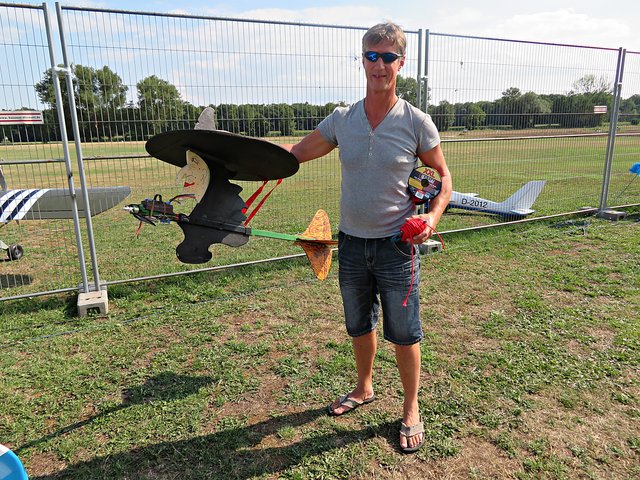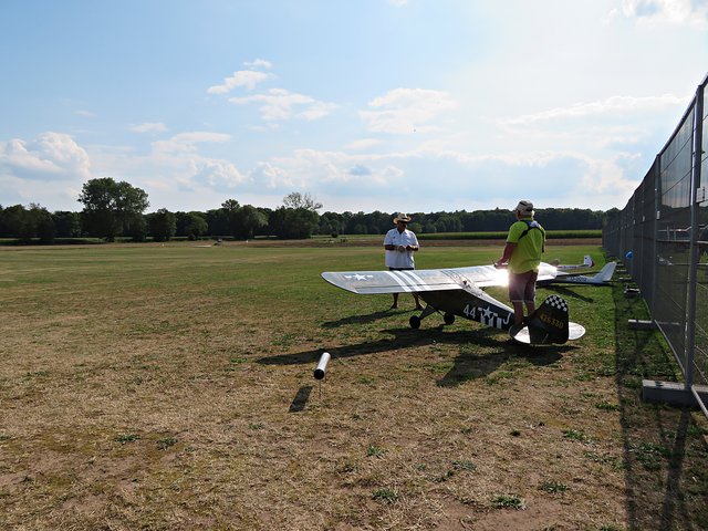 Zu uns gesellen sich der Segelflieger Hans Busche und der Moderator Klaus Diemert, der seine Sache prima macht, denn nicht nur Wissen, sondern auch Witz machen seine Moderation besonders. Hans Busche meinte, dass bei dieser Veranstaltung die Sicherheit groß geschrieben würde, so befinden sich die Zuschauer erst hinter drei separaten Sicherheitszäunen. Nur mit Begleitung eines Vereinsmitgliedes darf man kurzzeitig mal weiter vor, so wie ich zum Fotografieren.