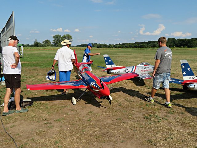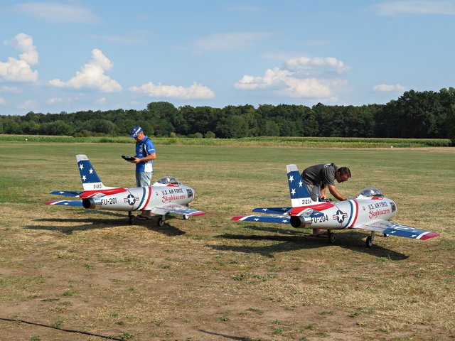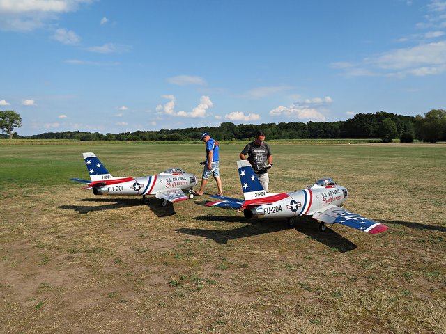 Das Kunstflugduo besteht aus den Piloten Andreas Ruppert und Michael Reitz und sie steuern zwei F 86 mit einer Spannweite von 3,10 Meter und 3 Meter Länge, Gewicht 24,5 Kilogramm. Beide nehmen an Formationswettbewerben teil und erreichten bei den Deutschen Meisterschaften Platz 2 und bei den Meisterschaften in China Platz 4. Die beiden Piloten machen das seit 8 Jahren als Hobby und ihre Kinder tun es ihnen schon gleich.