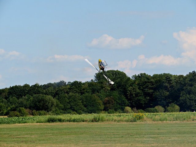 Gommersheim. Am 3. August besuchte ich die Modellflugshows des Modellflugvereins Gommersheim „Auf der Ganerb“. Für alle, die am 4. August zwischen 10 und 17 Uhr ebenfalls hin möchten, empfehle ich, in dem Ort immer den Hinweisschildern zu folgen und NICHT am Ende des Ortes verwirrt umzudrehen, denn der Platz befindet sich weit außerhalb des Ortes und es geht weiter und weiter durch den Wald hindurch bis endlich das Gelände erscheint. Ich war relativ spät dran und konnte den angekündigten „Gutselbomber“ nur noch hören und nicht sehen. Alle Kinder aus dem Zuschauerraum durften auf die Landebahn, um die abgeworfene süße Last in Form von Bonbons aufzusammeln. Das Wetter hätte an diesem Tage nicht besser sein können, also optimales Flug- und Veranstaltungswetter.