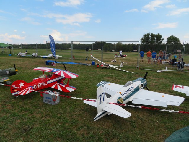 Besonders erwähnenswert sind die turbinenbetriebenen Flugzeuge. Das Klangbild ist besonders originalgetreu und die Fluggeschwindigkeit hoch. Als die beiden Turbinenjets durch die Luft fliegen, verbreiten sie einen fetten Sound. Außerdem starten zwischendurch Hubschrauber und Segelflieger, die geschleppt werden. Manche Flugzeuge fliegen nach eigenen Musiktiteln, die die Piloten einstudiert haben. Es werden auch spektakuläre Kunstflüge in Bodennähe gezeigt, da heißt es dann „Ameisen in Deckung“. Bereits ab dem Alter von 9 Jahren führen die kleinen Piloten in Begleitung eines Elternteiles, meistens Väter, ihre Kunststücke vor.