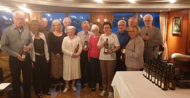 Vertriebsleiter Ulrich Steuerwald vom Weinkontor Edenkoben präsentierte eine abwechslungsreiche Weinprobe aus dem großen Sortiment, anschließend konnten die Gäste gerne noch einen guten Schluck ihrer jeweiligen Favoriten genießen.Nach der Reise ist vor der Reise: auf der Heimfahrt mit dem Bus informierte Peter Hausch über die diesjährige Silvesterreise mit der MS Switzerland auf dem Rhein (Jahreswechsel bei Koblenz unterhalb der Festung Ehrenbreitstein mit tollem Blick auf das sensationelle Feuerwerk) und die Leserreise 2020 auf der Seine mit der MS Excellence Royal. hs