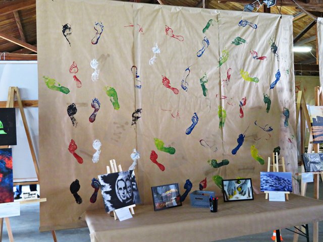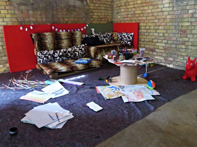 Total nett, dass eine gemütliche kreative Kinderecke in der Halle eingerichtet wurde. So können sich die Kinder mit Malstiften schon als Künstler betätigen während die Eltern gemütlich durch die Ausstellung schlendern.