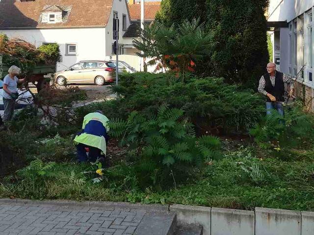Deshalb hat man in Duttweiler im Rahmen dieser Aktion Arbeiten erledigt, die von den zuständigen Abteilungen der Stadtverwaltung nicht gemacht wurden. Büsche und Gehölze rund um das Gemeindehaus - dort sind Kindertagesstätte und Ortsverwaltung beheimatet - wurden schon seit vielen Jahren nicht mehr zurückgeschnitten. Sie wuchsen teilweise in die Signalleitung der Ortsrufanlage, herabfallende Früchte stellten auf dem Weg zum Friedhof und auf dem Schulhof eine Unfallgefahr dar.