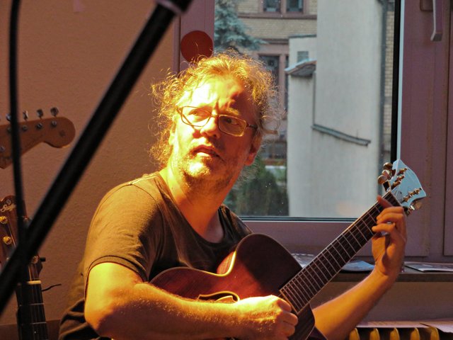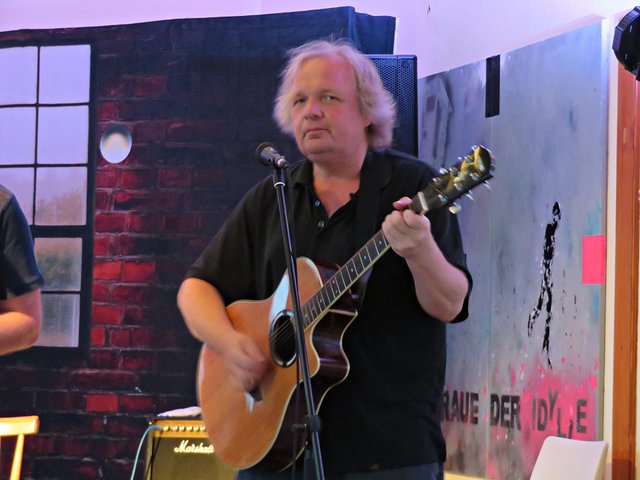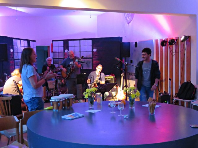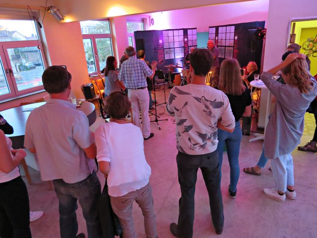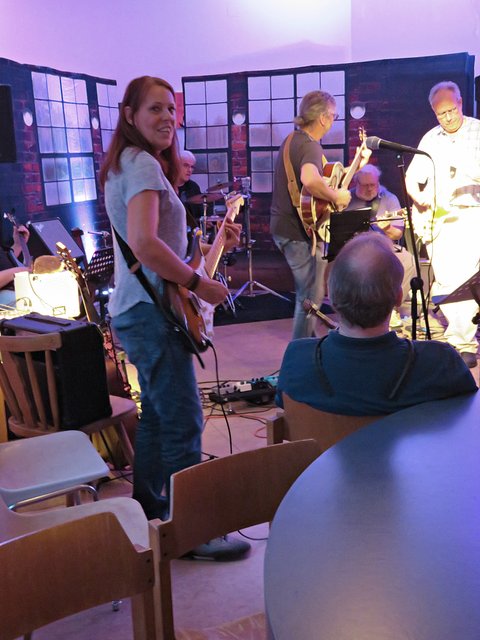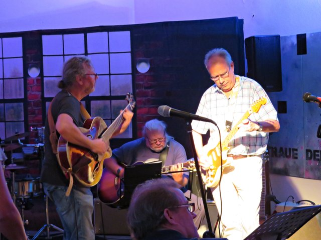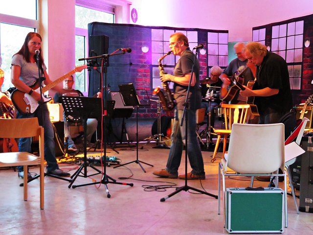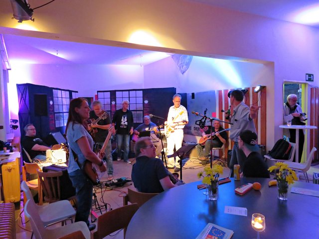 Günther: Es werden heute ca. zehn bis fünfzehn Musiker erwartet, um an Gitarren, Bass, Schlagzeug, Saxophon, Percussions und mit Gesang einen schönen und aufregenden Abend zu gestalten.