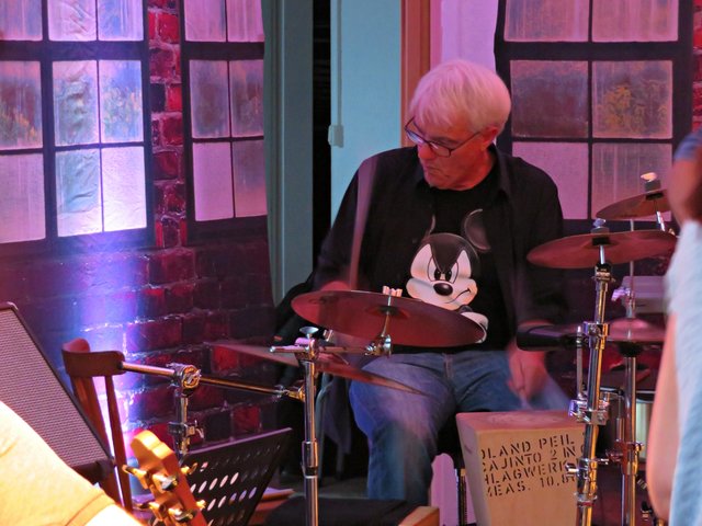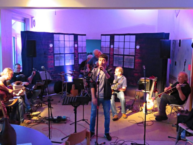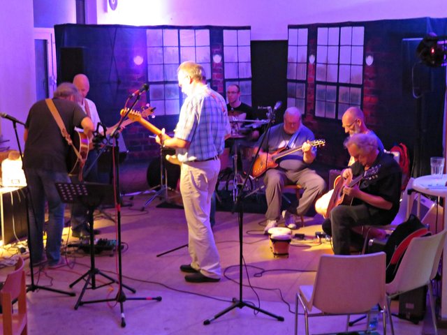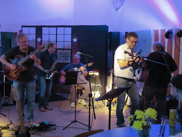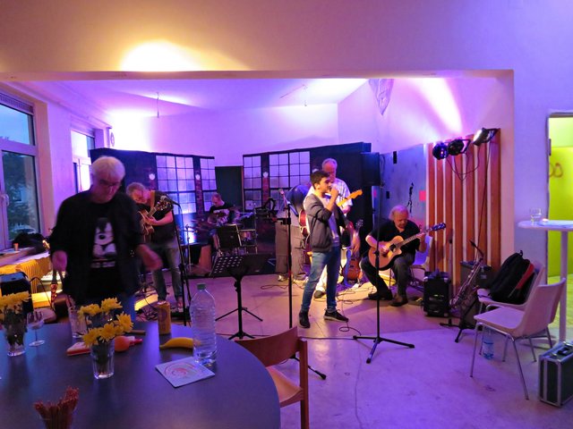 Dies ist eine „offene Bühne“. Immer wieder kommen neue Musiker dazu, andere machen eine Pause, denn es sind genug Musiker zum Wechseln da. Alles läuft völlig relaxed ab. Sie spielen unter anderem Songs von Pink Floyd, Bill Withers, Deep Purple und dann fängt einer eine neue Melodie an und die anderen finden sofort hinein, egal ob bekanntes Stück oder eine Jamm-Idee. Es ist ein lebendiges und dynamisches Projekt.