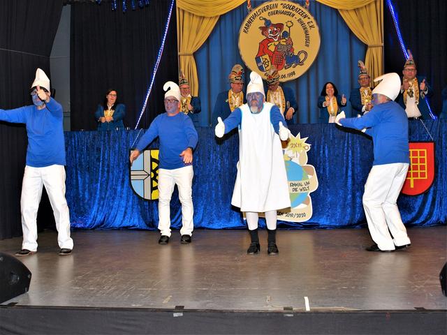 Nach Schlumpfhausen führten die fünf tänzelnden Rheinhäuser Schlümpfe, die vergnügten blauen Wesen um Peter Brand. Als Augenschmaus gefielen die Talente der „Cherbourger Teens“ und der „Cherbourger Dance Crew“.