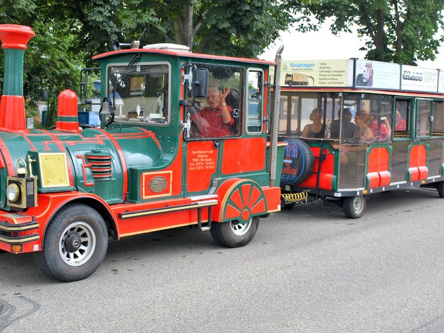 Aufgemotzt hatten die Festvereine ihr Festprogramm auch mit Rundreisen des Bummelbähnles bis an den Rhein. Allerlei Köstlichkeiten standen zur Auswahl. Sehr begehrt war beispielsweise der Fidelia-Flammkuchen, mit Charme und Können lockten die Sterneköchinnen des Sängerbunds.