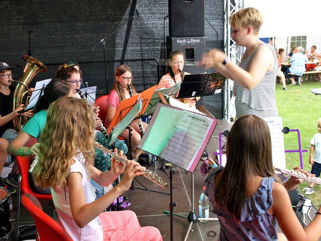 Erstmals trugen die „Tanzmäuse“ und die kleineren „Tanzmäuschen“ zur Unterhaltung der Dorffestbesucher bei. Für tolle Stimmung sorgten die Musikvereinigung mit Dirigentin Sabine Knebel, das Jugend- und das Schülerorchester, der Männerchor aus Kirrlach bei den Fidelianern und auch die verpflichteten Bands und Diskjockeys der Vereine.