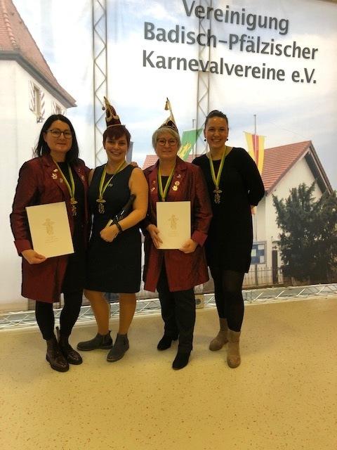Wie alljährlich wurden am Sonntag, den 05.01.2020 in der Stadthalle zu Speyer langjährige Mitglieder mit dem Goldenen Löwen geehrt. Dies ist eine der höchsten Auszeichnungen, welche die Badisch Pfälzische Karnevalsvereinigung zu vergeben hat. Der Löwe wird verliehen für hervorragende und langjährige Dienste zur Pflege und Erhaltung der Fasnacht am Oberrhein. Ingrid Bruckert, Hannah Förderer, Petra Appel-Dischinger und Sabrina Bloch erhielten diese Auszeichnungen für langjährige Mitgliedschaften und aktive Mitwirkung bei der Östringer Fastnacht im Verein der KG Wicker Wacker Östringen e.V. und signalisierten so auch den treuen Verbund zum Heimat- und Kulturverein. In der Delegation nach Speyer waren auch Katharina Reiß, Markus Bender, Reinhard Förderer, Carina Bloch, Lars Breithaupt und Anette Heinrich vertreten, die sogleich den Dank und die Glückwünsche des Vereins an die neuen Löwenträgerinnen aussprachen.