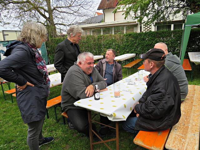 Die bereitgestellten Bänke füllten sich zusehends mit Gästen, die zumeist zu Fuß oder mit dem Fahrrad ankamen und schlewwerten über die vergangenen 70 Jahre, der eine mehr und der andere weniger. Es war ja auch genügend Jungvolk anwesend, die den vielen Geschichten der Älteren lauschten. Das Fest ging bis in den Abend hinein, angedacht war einmal 18 Uhr.
