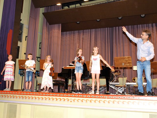 Den Kern des anspruchsvollen Programms bildeten acht Auftritte junger Künstler aus verschiedenen Klassen der Musikschule, die ihr Können eindrucksvoll unter Beweis stellten. Dazu zählten die Orchesterklasse I und III mit Hieronymus-Nopp-Schülern plus das zehnköpfige Musikschulorchester der Philippsburger Sinfoniker. Als Solisten brillierten Aliesa Schreiner an den Pauken, Stella Gavriil an der Violine und Constanze Brecht an der Querflöte.