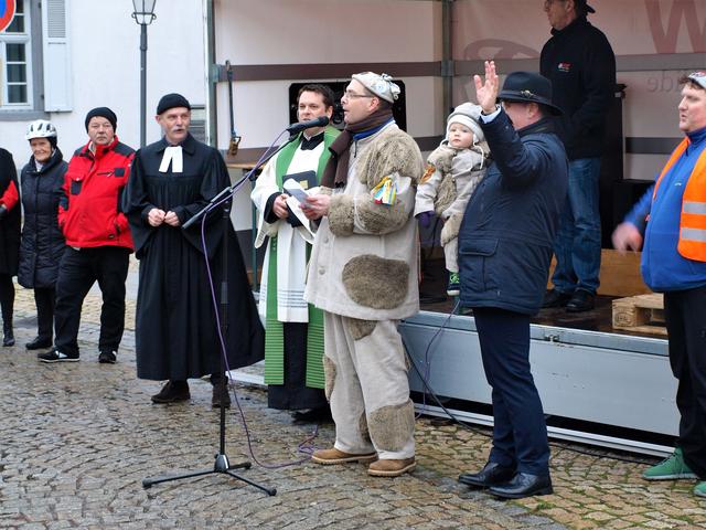 Zwei Tage lang ging’s rund: Bereits am Vortag startete ein kleiner Umzug zum Ile-de-Re-Platz. Dort stellten die Gehörnten einen Narrenbaum auf, klangvoll bereichert von den Badner Schalmeien. Unter besonderem kirchlichem Schutz stehen die Narren bis Aschermittwoch – dank der beiden Pfarrer Marcel Brdlik und Andreas Riehm-Strammer, die für alle Geißen und Nichtgeißen eine Narrensegnung vornahmen.