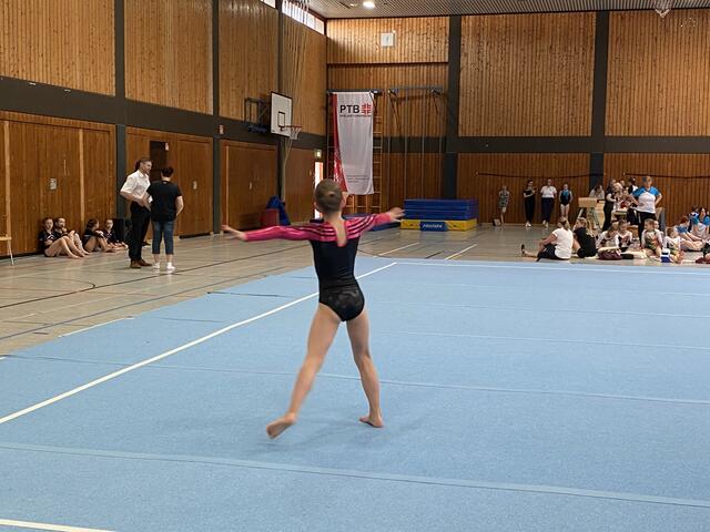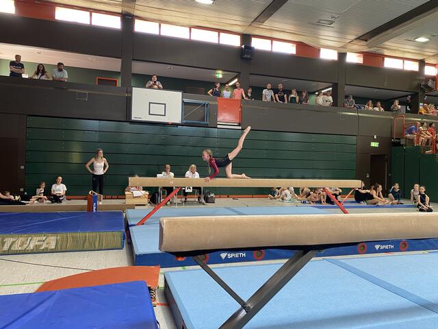 Am frühen Samstagmorgen musste unsere älteste Starterin Leonie Reinheimer (2007) ihr Können an den Geräten beweisen. Sie erkämpfte sich in einem starken Teilnehmerfeld den 11. Platz.