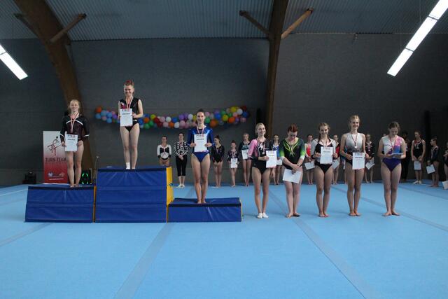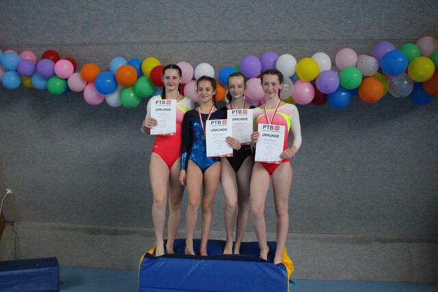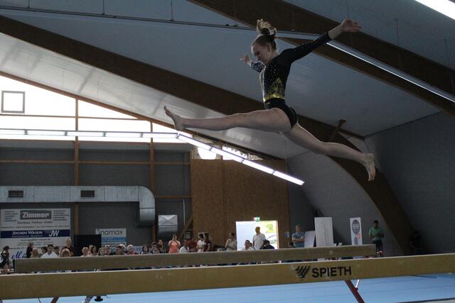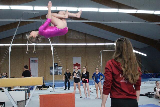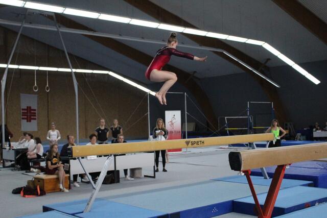 Ein volles Wochenende stand für die TTS Turnerinnen und Turner vor der Tür. Am frühen Samstagmorgen starteten unsere Jungs in die Halle der TSG Grünstadt. Nach einer Coronapause von knapp 2,5 Jahren, standen unsere Jungs teilweise zum ersten Mal vor einem Kampfgericht. Erstmals startete Till Müller im 6-Kampf nach Code de Pointage – dem schwersten Wertungssystem. Hier konnte er sich den Vizepfalzmeistertitel erturnen. In der Leistungsklasse 2 schaffte Leon Sachs den Sprung aufs Treppchen und ging mit der Bronzemedaille nach Hause. Im Allgemeinen Pflichtbereich sicherte sich Lukas Fritzler ebenfalls den 3. Rang. Auch unsere weiteren 6 Turner konnten tolle Übungen zeigen. Parallel zu unseren Jungs, fanden an diesem Wochenende des 21. und 22.05.2022 die Pfalzmeisterschaften Spitzensport im Gerätturnen weiblich bei uns als Ausrichter statt. Kurzfristig haben wir uns dazu entschieden, die Veranstaltung in unserer saisonalen Trainingsstätte in Mackenbach durchzuführen. Dies war das erste Mal, dass wir dort einen so großen Wettkampf ausgerichtet haben. Sonntagsnachmittags vielen alle völlig erschöpft ins Bett aber die Veranstaltung war sowohl von den Platzierungen als auch von der Durchführung ein voller Erfolg. Ebenfalls drei Treppchenplatzierungen konnten die Mädels erturnen. Nachdem am Morgen unsere Nachwuchsturnerin in der AK 8, Nela Kehrer, knapp das Treppchen mit dem 4. Rang verpasste, konnte sich Maren Christmann in der Leistungsklasse 1 einen sensationellen 2. Rang und somit die Silbermedaille erkämpfen. Mit dieser Platzierung hat sie sich zum Deutschland-Cup in Wanging am See qualifiziert. Darauf kann sie mehr als stolz sein. Am Abend des 21.05. konnte auch Chiara Westrich in der Leistungsklasse 2 nachziehen. Mit den Vizepfalzmeistertiteln in der Tasche haben sich die beiden zu den Rheinland-Pfalz-Meisterschaften qualifiziert. Am Sonntag gingen dann unsere Turnerinnen der Leistungsklasse 3 an die Geräte. Mit Tabea Prskawetz ging eine unserer erfahrensten Turnerinnen ins Rennen. Sie überzeugte mit hervorragend choreografierten Übungen und tollem Ausdruck die KampfrichterInnen und sicherte sich so die Bronzemedaille in ihrer Altersklasse. Insgesamt gingen 9 Turnerinnen im Spitzensportbereich an den Start. Jeder von ihnen hat ihr bestes gegeben und tolle Platzierungen erreichen können. Mit viel Elan geht es jetzt weiter ins Training um die Übungen für die Rheinland-Pfalzmeisterschaften und den Deutschland-Cup zu verfeinern und dort die beste Leistung abzurufen. Ein großer Dank geht auch an unseren Förderverein und an unser Bistro in der Tennishalle Mackenbach "de Belgian Bistro" für die hervorragende Verpflegung. Wir gratulieren allen Jungs und Mädchen und sind überglücklich über ein solch erfolgreiches Wochenende.