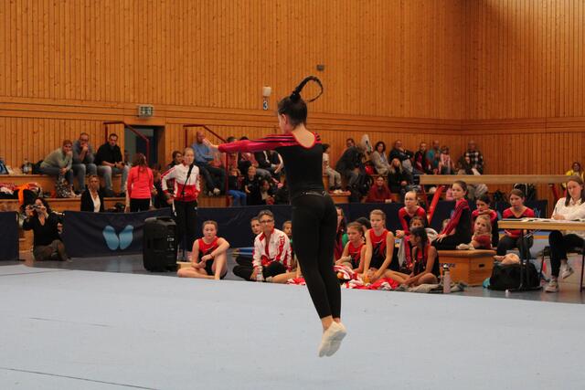 Die zweite Mannschaft um Lina Zinsmeister, Miriam Strasser, Nele Williams, Karla Bauer, Victoria Krieger und Anna Borst setzte sich gegen 8 weitere Mannschaften durch und sicherte sich dadurch ebenfalls einen Platz auf dem Podest. Mit Körperspannung und Ausdrucksstärke konnten sie die Kampfrichterinnen von sich überzeugen und erhielten für ihre Leistungen die Silbermedaille. Mit strahlenden und feuchten Augen nahmen die Mädchen ihre verdienten Auszeichnungen entgegen.  Mit dem zweiten Platz haben sie sich für den nächsthöheren Wettkampf, die Landesbestenkämpfe, qualifiziert.