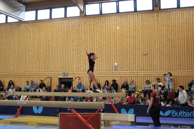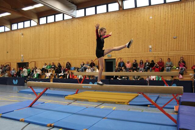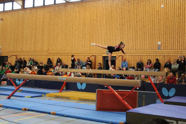 Als vierte und letzte Mannschaft starteten die jüngsten Turnerinnen um Madison Paulick, Clara Hanz, Sophie Fichter, Chiara Schneider, Mina Tsuchida und Emilia Herrmann. Die Coolness dieser Mädchen aus dem Training wurde an diesem Tag durch Nervosität und Aufregung ersetzt. Mit 4 Stürzen am Balken hatten die Mädchen einen wirklich schweren Start in den Wettkampf. Dennoch zeigten die jungen Turnerinnen Kämpfergeist und Leistungswillen. An Sprung und Boden konnten sie mit schönen Übungen glänzen und sicherten sich dadurch den 8. Platz in diesem Wettkampf.