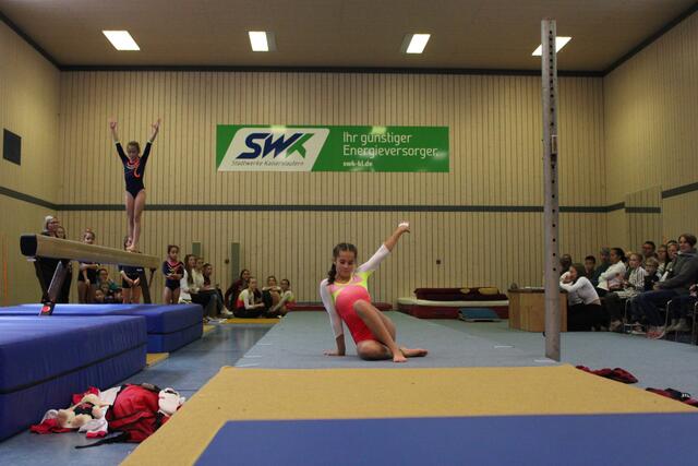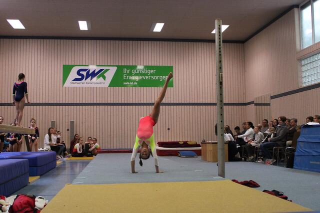 Im kleinen Kreis fanden am 03. Oktober 2022 die Gaumeisterschaften Mannschaft im Spitzensport statt. Dieses Jahr waren wir zu Gast beim TV Erlenbach. Im familiären Umfeld konnten unsere Mädels von der Altersklasse 7 bis hin in den Jahrgangsoffenen Bereich in der LK 3 ihre Wettkampfübungen präsentieren. Insgesamt gingen 4 Mannschaften für das Turn-Team Sickingen an den Start. Unsere kleinsten Turnerinnen der Altersklasse 6, zeigten bei ihrem ersten Wettkampf bereits hervorragende Leistungen. Die Mannschaft um Hannah Pereskocka, Marie Bauer, Sarah Meier, Marie Scheepers, Lotta Schwarz, Misa Tsuchida und Xenja Walter konnten bereits mit ihren 6 und 5 Jahren an allen vier Geräten punkten und wurden mit der Silbermedaille belohnt. Unsere Mädels der Altersklasse 7 erreichten insgesamt 155,25 Punkte und somit den 1. Rang. Unsere kleinen Goldmädels Hanna Blügel, Emelie Dering, Sofia Hermann, Anna Hog und Paula Noll haben in den letzten Wochen jede Menge Trainingseifer gezeigt und wurden am Wettkampftag dafür belohnt. Unsere dritte Mannschaft ging im Wahlwettkampf AK 7-11 an den Start. Die Mädels um Eve Prieto, Jana Ulrich, Emelie Baum, Emilia Frank, Mia Junkes, Mira Schwarz, Nela Kehrer und Lia Ajan konnten sich an Sprung, Barren und Boden jeweils an die 40 Punkte heranturnen. Lediglich am Balken hatten sie in diesem Wettkampf etwas Schwierigkeiten. Dennoch konnten sie dank der drei hervorragenden Geräte die Goldmedaille gewinnen und sich so auf die Pfalzmeisterschaften Mannschaft am 08. Oktober qualifizieren. Auch unsere größten Starterinnen in der Leistungsklasse 3 konnten an den Gaumeisterschaften glänzen. Teilweise turnten die Mädchen das erste Mal im Spitzensport einen Wettkampf. Demnach war die Nervosität fast greifbar. Lena Bauer, Emilia Zorn, Fiona Schöne, Hannah Kahl, Gabriela Pereskocka, Ella Vandeveer und Emelie Weiler zeigten toll choreografierte Bodenübungen und sicherten sich den 1. Rang. Eine Besonderheit hatten wir bei Emilia Schöne. Unsere einzige Turnerin, die im Spitzensportbereich Altersklasse 9 turnt, durfte gemeinsam mit der Mannschaft des TV Erlenbach starten und eine Goldmedaille mit nach Hause nehmen. Emilia hat an allen vier Geräten tolle Leistungen präsentieren können und arbeitet schon ganz gespannt auf die Pfalzmeisterschaften hin, bei der sie sich für den Kader qualifizieren kann.