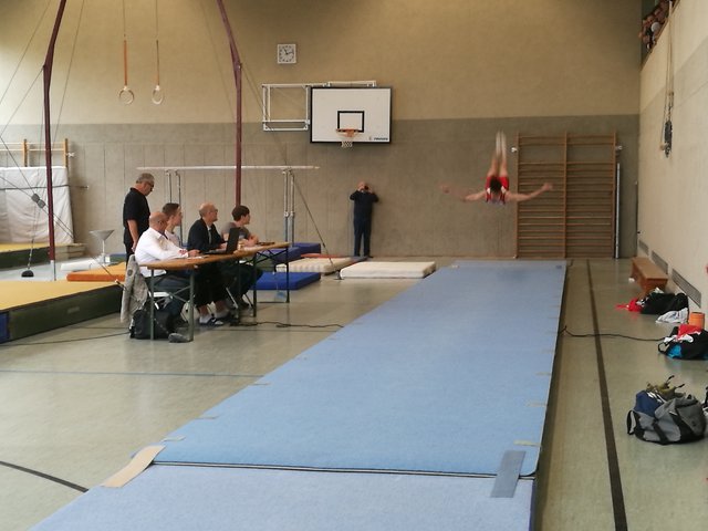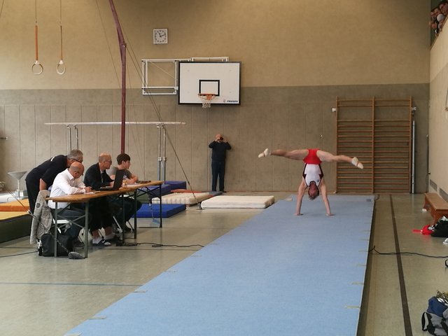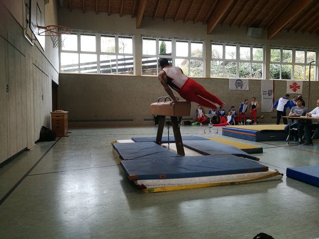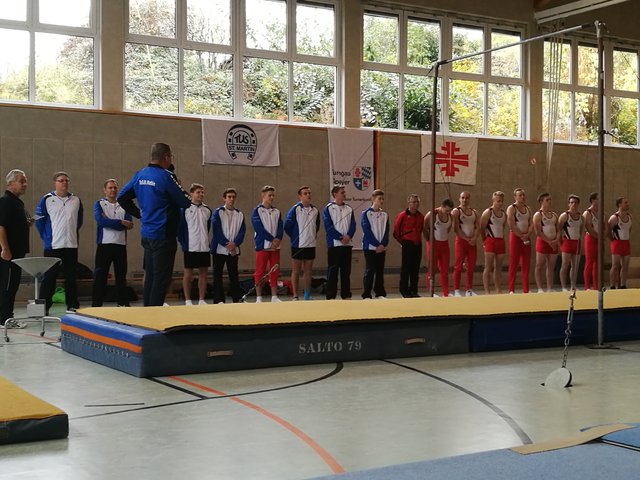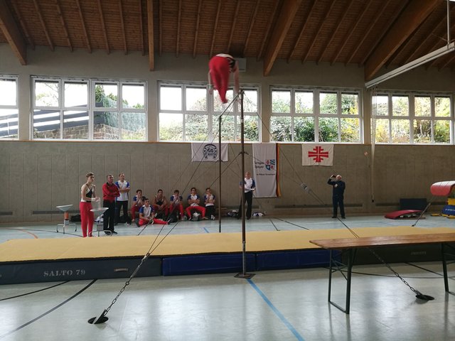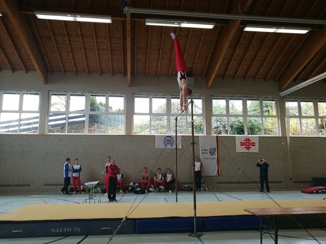Der letzte Ligawettkampf stand für unsere Jungs am 04. November gegen das Team Speyergau vor der Tür. Bereits um 8.00 Uhr hat die Reise von Ramstein nach St. Martin begonnen. Nach dem Einturnen an allen Geräten, starteten wir pünktlich um 11.00 Uhr mit dem Boden. Mit jeweils 11,10 Punkten konnten Daniel Eichhorn und Nick Leßmeister einen guten Start für die Sickinger Turner am Boden erhaschen. Auch Gerald Heil konnte eine sturzfreie Bodenübung und sammelte wichtige Punkte für das TTS. Leider mussten wir den Boden um 0,4 Punkte an das Team Speyergau abgeben. Nun ging es weiter zu dem allseits verpönten Pauschenpferd. Hier legte unser Team vor. Begonnen hat Achim Wätzold mit einer sauberen Pauschenpferdübung. Ziel ist es möglichst ohne Sturz das Gerät zu beenden. Auch Julius gelingt es eine Übung durch zu turnen. Leider mussten wir danach bei Daniel wegen eines Sturzes den Joker ziehen. Nick Leßmeister konnte uns die verlorenen Punkte wieder einturnen und wir gewannen das Pauschenpferd mit insgesamt 30,2 Punkten für uns. Mit einer spektakulären Ringeübung konnte Gerald Heil mit 11,9 Punkten die nächsten wichtigen Punkte auf unser Punktekonto bringen. Mit zwei soliden Übungen von Nick Leßmeister und Achim Wätzold konnten wir auch dieses Gerät für uns entscheiden. Der Zwischenstand nach drei geturnten Geräten liegt bei 96,05 Punkten für unser Turn-Team Sickingen und das Team Speyergau erturnte sich 90 Punkten. Nach dem Einturnen an Sprung, Barren und Reck ging es auch direkt wieder in die Vollen. Den Sprung mussten wir leider an die Heimmannschaft abgeben. Weiter ging es mit einem starken Gerät unserer Turner, dem Barren. Michael Junker begann für das Turn-Team und sicherte sich gute Punkte, leider musste Achim beim Abgang einen Sturz in Kauf nehmen. Vor dem letzten Gerät führte das Turn-Team Sickingen mit 0,9 Punkten. Nun geht es an das Paradegerät im männlichen Gerätturnen dem Reck. Leider mussten unsere Jungs hier viele Punkte liegen lassen. Am Ende war es ein knapper Kampf zwischen dem Speyergau und dem Sickingergau. Am Ende hatten leider die Speyrer die Nase vorne und entschieden das Treffen mit 190,70 Punkten gegen 185,55 Punkten für sich. Dennoch sind wir froh, dass die Mannschaft um Julius Braun, Michael Junker, Sebastian Müller, Nick Leßmeister, Achim Wätzold, Erik Ullmert, Dominik Scherer, Daniel Eichhorn, Lukas Eichhorn und Gerald Heil zu einem sensationellen Team aus mehreren Vereinen zusammengewachsen sind. Alles in allem war die Liga eine großartige Idee der Initiatoren und wir hoffen, dass wir nächstes Jahr die Möglichkeit haben erneut anzugreifen.