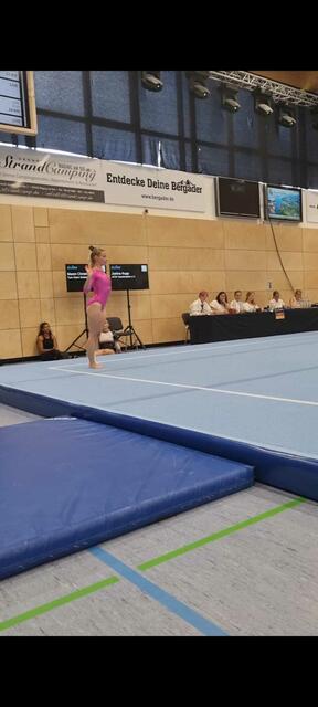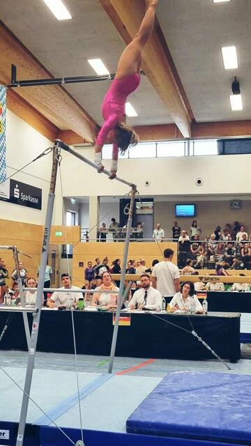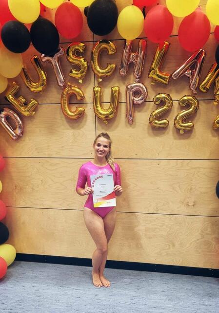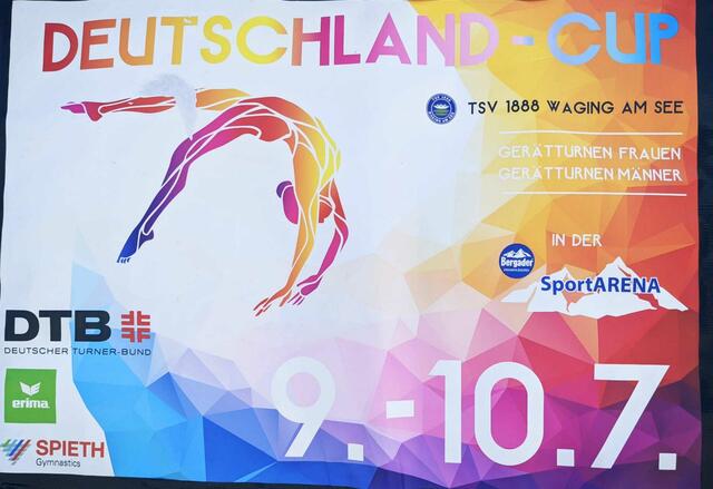 Am Wochenende des 8.-10.Juli 2022 nahmen drei Ramsteiner Mädels die 600 km weite Anfahrt nach Bayern auf sich, um das Turn-Team Sickingen auf dem Deutschland-Cup zu vertreten. In der Leistungsklasse 1 der 18-bis 29- Jährigen hatte sich Maren Christmann für diesen deutschlandweiten Wettkampf qualifiziert.  Tabea Prskawetz agierte als ihre Trainerin und mentale Unterstützung und Barbara Meese komplettierte das Team als ausgebildete Kampfrichterin. Für die Mädels war dies der erste Wettkampf auf nationalem Niveau. Entsprechend waren sie von der professionellen Organisation und den hervorragenden Wettkampfbedingungen, die in der Bergader Sportarena in Waging vorherrschten, überwältigt. Der Ausrichter TSV Waging am See hat für das Sportevent keine Kosten und Mühen gescheut. Neben eindrucksvoller Lichtshow, digitalen Wertungsanzeigen und Präsenten für die Teilnehmerinnen, lud der Sportverein nach der Veranstaltung abends zu einem bayrischen Abend  ein.