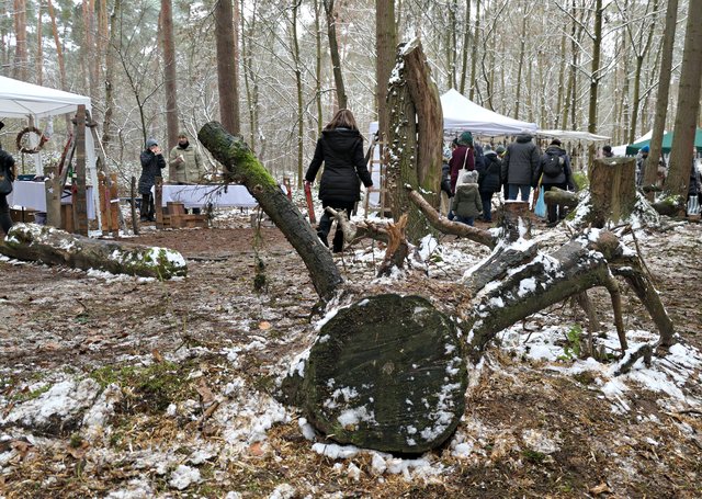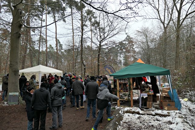 Dudenhofen. Am 3. Adventssonntag, dem 16. Dezember, fand eine Völkerwanderung gen Weihnachtswaldbasar statt. Und der Wald hatte sich in der Nacht zuvor passend mit einem weißen Kleid eingedeckt, nicht viel, aber doch mit winterlichem Antlitz. Es war mein erster Besuch dort und es überraschte mich, wie bekannt dieser Waldbasar zu sein scheint.