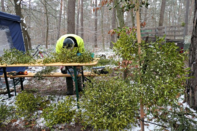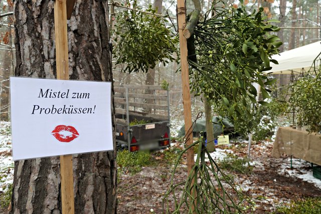 Der Renner des Tages waren wohl die Mistelzweige. Etliche Leute begegneten mir mit einem Zweig in der Hand. Dem Brauch nach sollen Paare, die sich unter dem Mistelzweig küssen, ein Leben lang zusammen bleiben. Na denn, ich hatte das Glück, ein nettes Paar als Testpersonen zu finden. Viel Glück ihr Beiden!