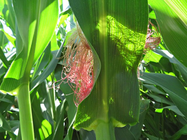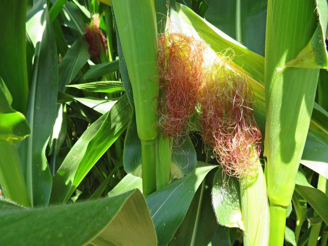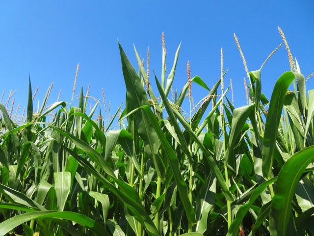 Gerade als ich aus dem Labyrinth zurückkam, kehrte auch Grundstückbesitzer Fritz Schardt mit seinem fleißigen Helfer Fabian Liebel vom Mähdreschen zurück. Gerne unterhielt er sich mit mir und ließ mich, wissen, dass das Maisfeld bis Ende September stehen bleibt und im Oktober geerntet wird. Dann ist die Herrlichkeit vorbei und die Maiskolben werden zu Futtermais verarbeitet. Es werden nur die Körner geerntet, der Rest bleibt als Humus auf dem Feld zurück. Danach wird er gemulcht und gepflügt.