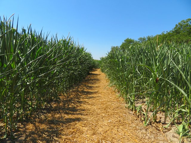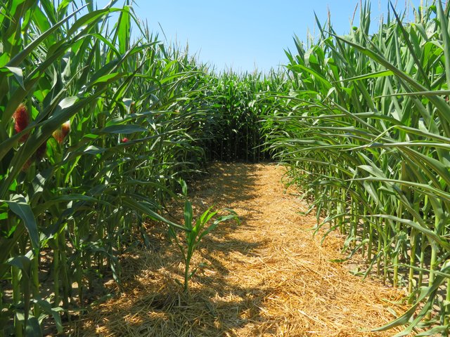 Leimersheim. Der Mais steht hoch, die Wege durch das Feld sind mit Stroh ausgelegt, dann kann es losgehen. Am 24. Juli wollte ich mir das Maislabyrinth in Leimersheim anschauen. Es hätte liebend gerne eine paar Grad kühler sein dürfen, aber so hatte ich bei 37 °C das ganze Maisfeld für mich. Ich wurde sehr freundlich von Frau Schardt vom Seehof empfangen und mit einer Flasche Wasser versorgt, damit ich wenigstens nicht verdurste.
