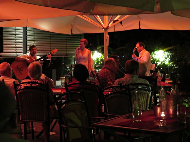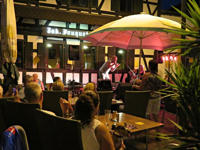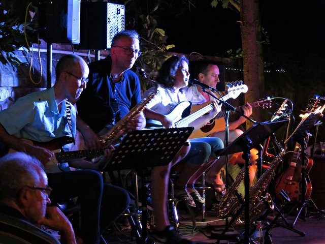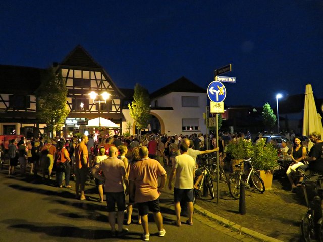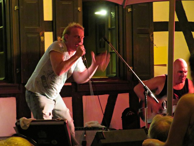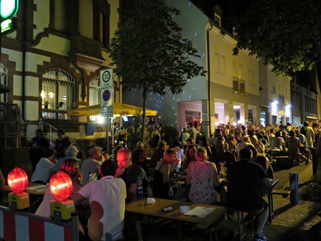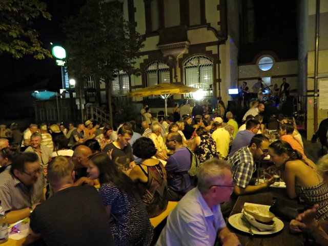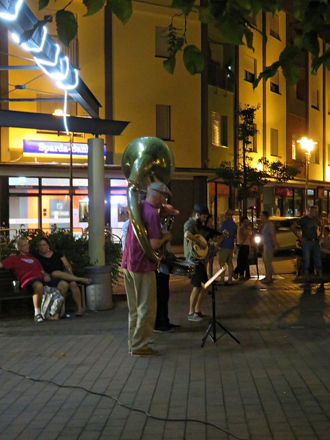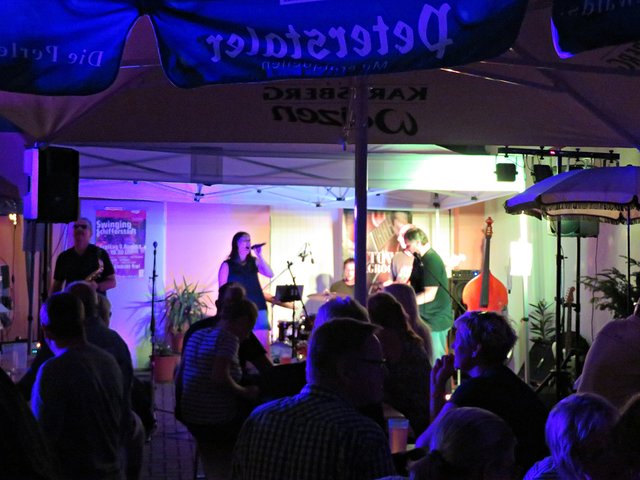 Schifferstadt: Am 3. August war ich auf musikalischen Pfaden im Nachbarort Schifferstadt unterwegs. Aber nicht nur Swinging Schifferstadt wurde geboten, sondern auch zum diesjährigen 1150. Stadtjubiläum ein Mittelaltermarkt mit allem Drum und Dran. Nachdem wohl alle Schifferstadter wohlweißlich zu Fuß oder mit dem Fahrrad unterwegs waren, durfte ich als Auswärtige erstmal ums Carrée fahren, um einen Platzplatz zu finden. Die musikbegeisterten Menschen standen teilweise bis auf die Straße, um den vielseitigen Bands zu lauschen. Erster Halt war bei Jak Fouquet, wo es ordentlich rockte; ich ordne es mal Heavy Metal zu, jedenfalls zu dem Zeitpunkt als ich dort ankam. Danach bin ich zum Fuchsbau. Hier faszinierte mich neben der tollen Musik der Mundharmonikapart. Bei der Klangschmiede tummelten sich zwar etliche Leute, aber die Band hatte gerade eine Pause eingelegt. Vor dem La Piazza auf dem Marktplatz lauschte ich den Jazzklängen und sogar eine Tuba war im Einsatz. Beim Pfeffer & Salz wurde ich in die Elvis-Presley-Zeit zurückversetzt. Weiter ging’s zum Bistro Chalet und in den Salischen Hof, wo in idyllischer Gartenanlage geswingt wurde.