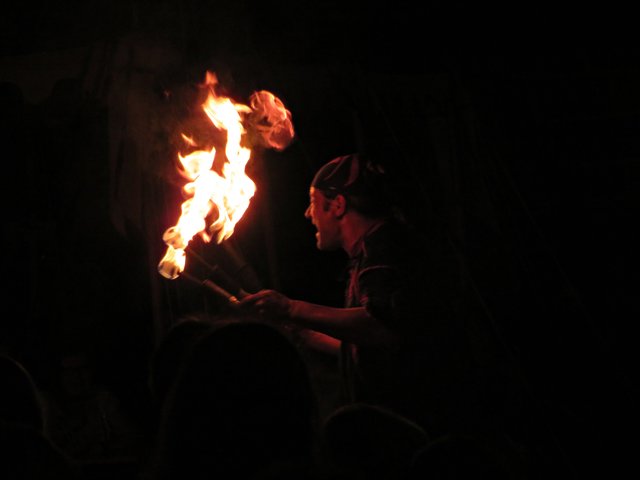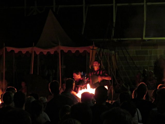 Der Mittelaltermarkt befand sich in der Dorfmitte rund ums Rathaus mit seinen diversen Ständen. Ein Standbetreiber hatte extra zum Jubiläum Münzen in verschiedenen Materialien geprägt. Zwei Jongleure heizten den Zuschauern mit ihren Feuerkeulen zusätzlich ein. Es tummelten sich Händler, Handwerker, Gaukler, Musiker und Lagergruppen dort. An Essen und Getränken mangelte es nicht. Der Mittelaltermarkt ist noch bis Sonntag 05.08. ab 11.00 Uhr zu besuchen. (mel)