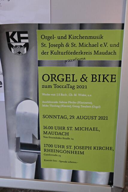 Nicht nur hier in der St. Jakobus-Lirche sollte heute über den ganzen Tag die Toccata erklingen, sondern auch in vielen anderen Kirchen zum Projekt Tocca-Tag in der Pfalz und Saarpfalz. Das berühmteste Orgelwerk von J.S. Bach bei freiem Eintritt zu genießen ist wohl darauf zurückzuführen, dass die Orgel DAS Instrument des Jahres 2021 ist. So sollte es um 16.00 Uhr in der St. Michael Kirche (Maudach) und um 17.00 Uhr in der St. Joseph-Kirche (Rheingönheim) unter dem Namen „Orgel & Bike“ weitergehen. Apropos Bike: Auch von Iggelheim fuhren manche mit ihrem Bike hier nach Schifferstadt zu diesem akustischen Genuss. (mel)
