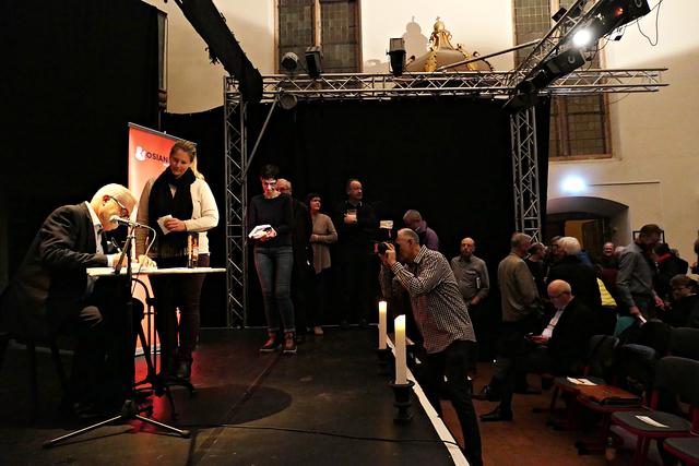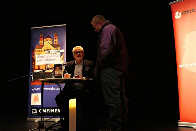 Speyer. Am 10. März gab es in der Heiliggeistkirche eine Lesung auf der renommierten Speyer.Lit.. Am Eingang lagen jede Menge Bücher des heutigen Abends, die der Künstler vor und nach seiner Lesung gerne mit ein paar netten Worten schriftlich und persönlich signierte. Mit dem Kauf dieses Buches unterstützt man den Dombauverein Speyer mit 1 Euro.