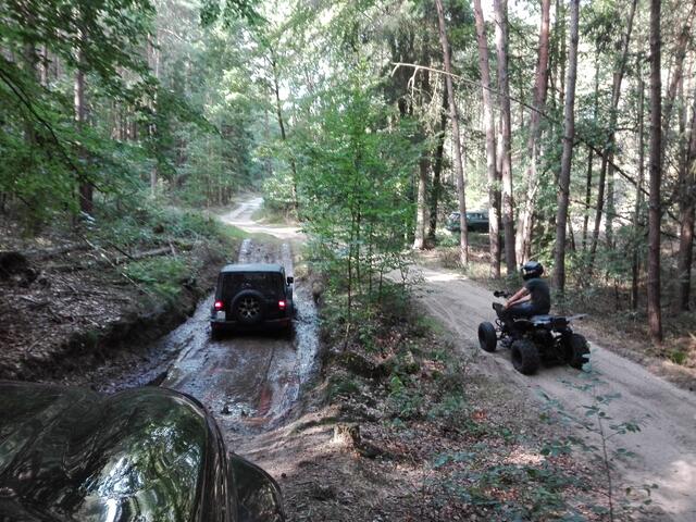 Im Ortsteil Reddereitz konnten wir einen ca. 30 ha großen Privatwald befahren. Der lockere Sandboden und die anspruchsvollen Steigungen machten viel Spaß, waren aber auch eine Herausforderung für die Fahrzeuge.