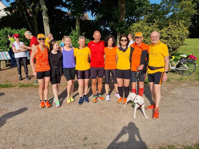 Mega ist auch die Laufcommunity um den Parkrun. Großes Hallo beim ITK Südpfalzlauf in Rülzheim.