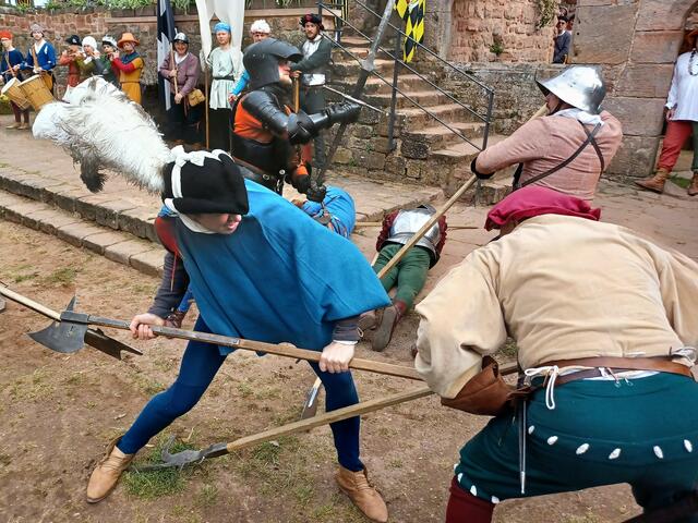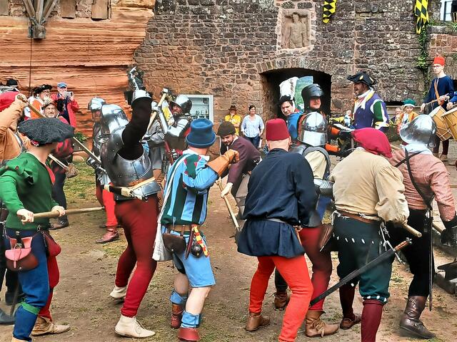 Kampfvorführungen machen das Mittelalter bei den Burgerlebnistagen zum Greifen nah. Vom 1. bis 4. Mai finden in Landstuhl auf der Burg Nanstein die Burgerlebnistage der Heimatfreunde statt.  | Foto: Boris Bohr
