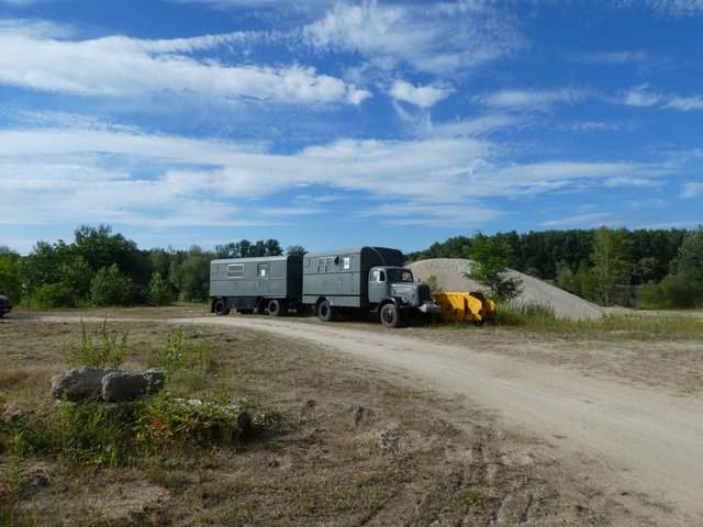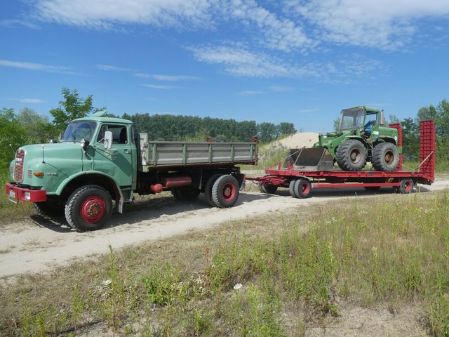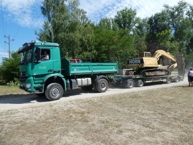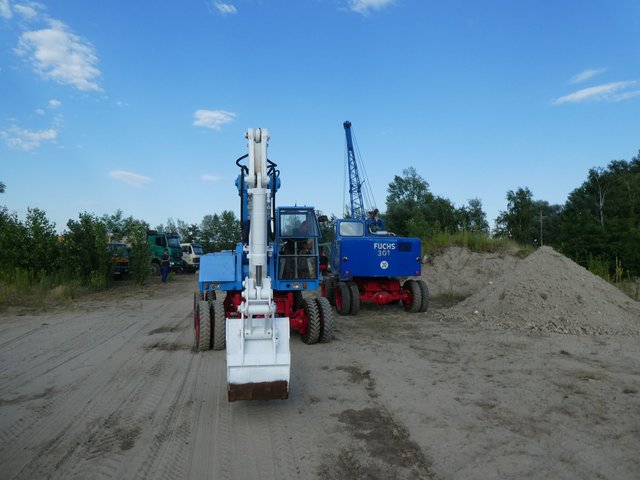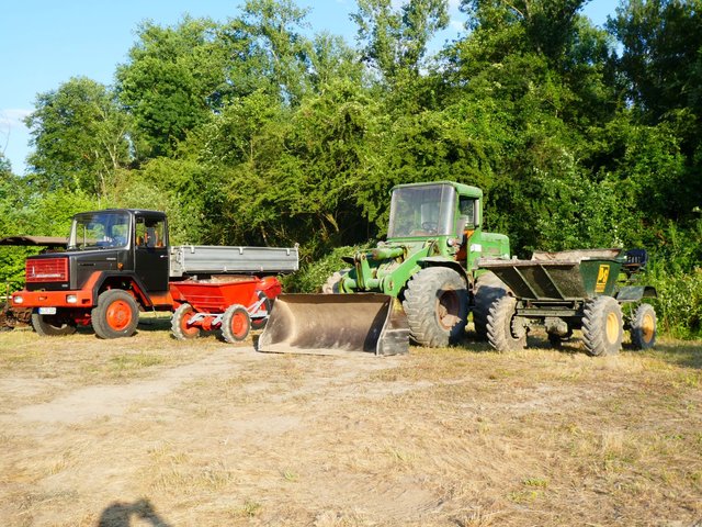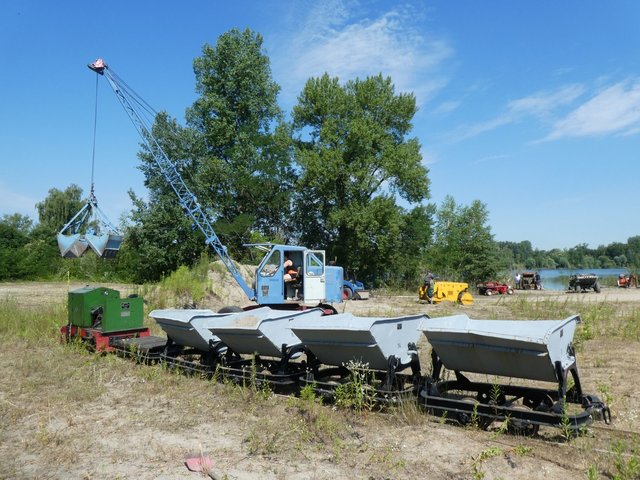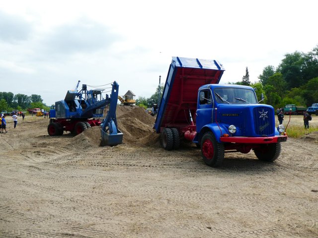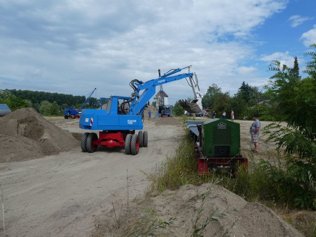 Huttenheim. Am vergangenen Wochenende konnten wir eine Neuauflage der historischen Baustelle erleben. In den zurückliegenden Wochen wurde eine Auswahl von Maschinen vorbereitet. Am Freitag ging es dann recht früh los mit den Transporten und dem Aufbau. Da waren bereits die ersten weitgereisten Mitglieder zur Unterstützung vor Ort. Die Transportmannschaft schaffte fünf Transporte am Freitag, so daß die Baustelle mit ausreichend eigenen Maschinen bestückt war. Am aufwändigsten war der Feldbahnzug...