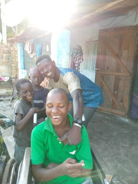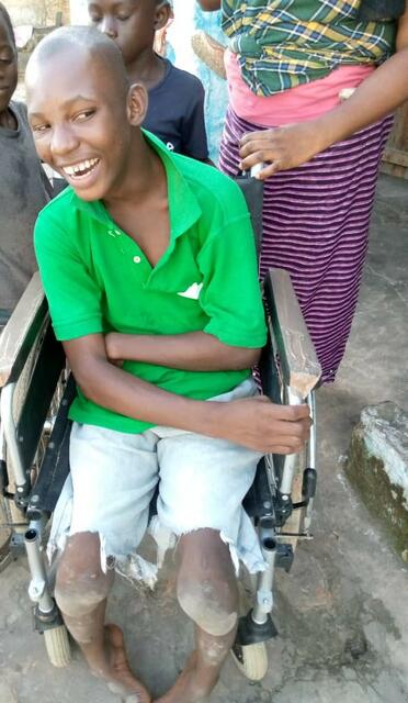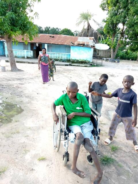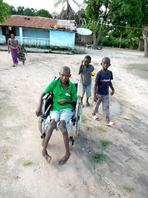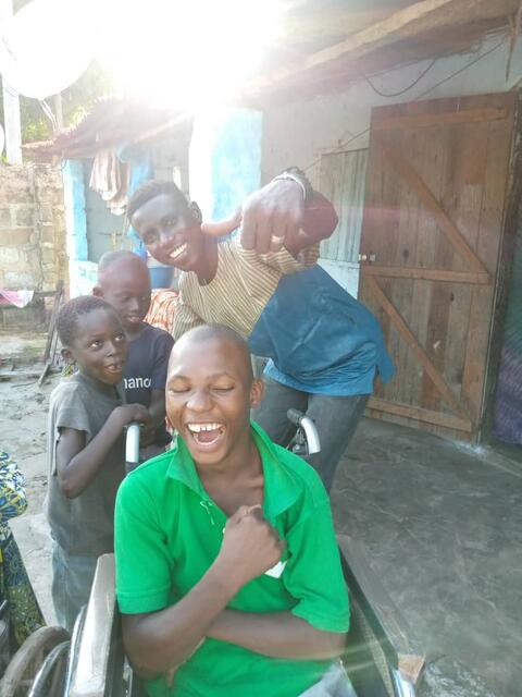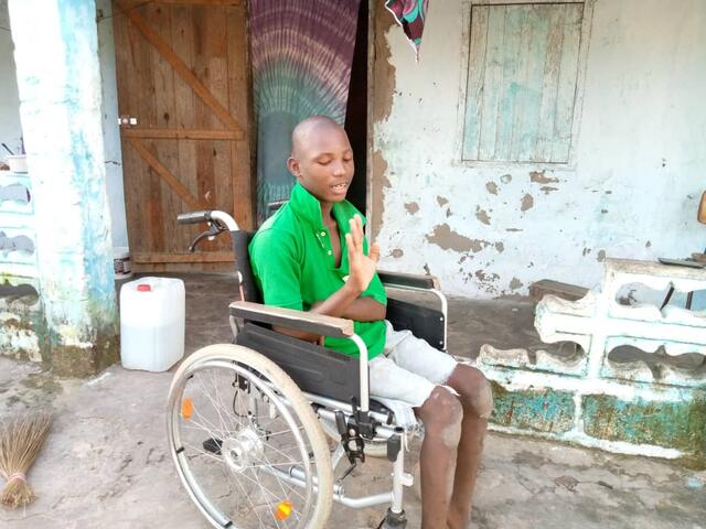 Die heranrollende Rollstuhlfahrerin