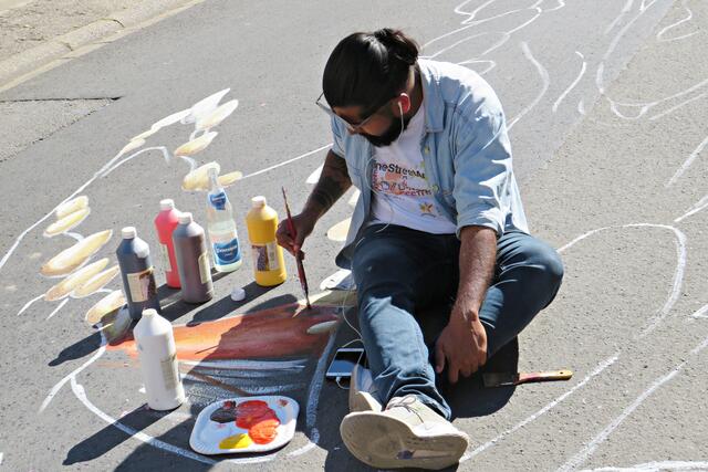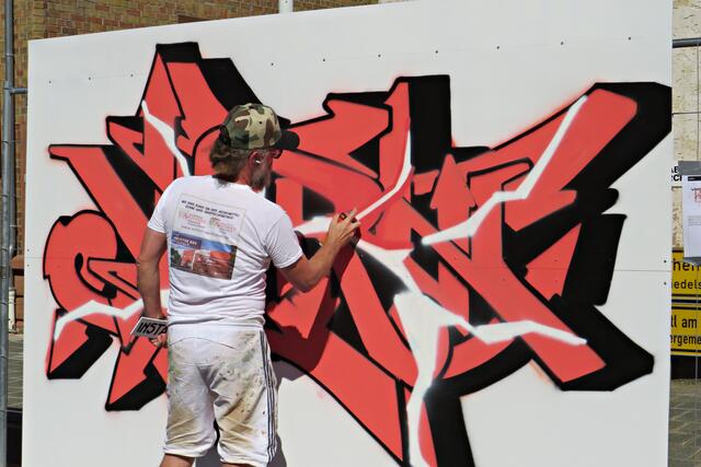 Man konnte den nationalen und internationalen Künstlerinnen und Künstlern über die Schulter schauen, manchmal auch durch ein Vergrößerungsglas. Einige malten mit Kreide, andere mit Pinsel oder nahmen die Spraydose zur Hand; der Kreativität einfach freien Lauf lassen. Aber die meisten hatten eine Vorlage, nach der sie ihr Mural oder Graffiti malten. Die Besucher können mitmachen und außerdem ihre Künstler-Favoriten auszeichnen, indem sie Stimmzettel abgeben. Mancher hatte auch ein Hütchen zwecks Spendeneinwurf neben sich liegen. Die Maler arbeiten in den Kategorien 2D, 3D, Kopist, Hobby, Familie und Master. Mehr als 40 Profis und Hobbykünstler sind dieses Jahr am Start und es werden immer mehr mit den Jahren. Dieses Mal dabei: