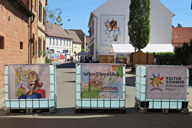 In den Höfen der schnuckeligen Weinlokale war ordentlich was los, sei es dem Durst oder Schatten geschuldet. Gönnheim hat viele schöne Weinhöfe; da kann man mal sehen, was so ein Besuch des StreetArt-Festivals noch für schöne Seiten hat. Wein und Kunst genießen! Das Programm beinhaltete Live-Performances, Ausstellungen und Mitmachangebote.