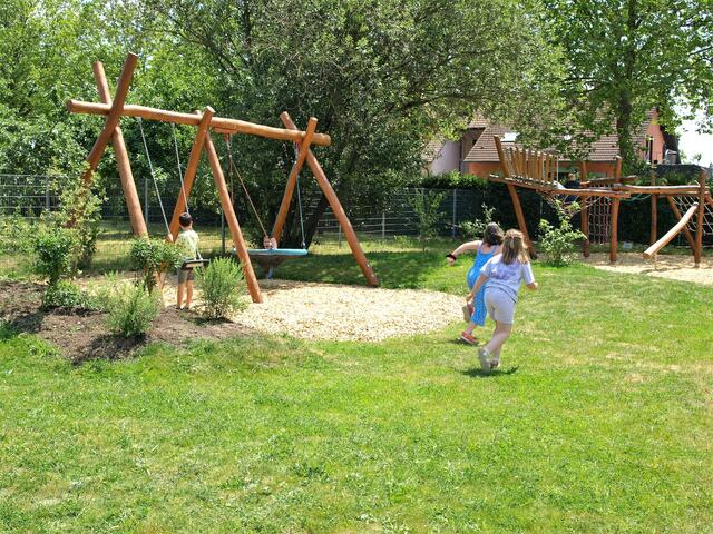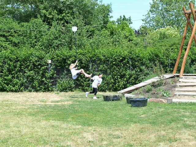 Gefragt ist auch die Seilbahn. Für die Fußballfans stehen kleine Fußballtore bereit. Zur Abrundung der Neugestaltung gehört eine Blumenwiese.