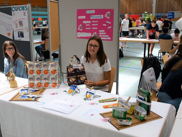 Zu den 120 durchweg attraktiven Angeboten gehörte die Herstellung von verschiedenen Cremes - mal gegen Körpergeruch, mal gegen blaue (Tinten-)Hände - und auch von begehrtem Lippenbalsam. Zu bewundern waren außerdem zu Hundespielzeug und Schlüsselhalter umgestaltete ausrangierte Tennisbälle. Zu den leckeren Sehenswürdigkeiten zählten die Bio Smoothies. Viel Lob fand die aufgezeigte Möglichkeit der Abfallverwertung.