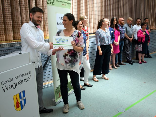 Die Vorgaben sah er „hervorragend umgesetzt“: Es gehe darum, auf spielerische Art die Wirtschaft zu verstehen lernen. Noch nie habe es in einer Schule eine so große und an Vielfalt beeindruckende Hausmesse gegeben – und das dauerhaft und bereits über viele Jahre hinweg. In anderen Städten und Gemeinden werden so 20 Beteiligte erreicht, in Waghäusel kam die Rekordzahl von 120 zustande.