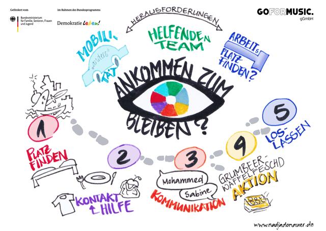 „Immer eine neue Krise – immer finden sich Menschen, die zusammenhalten!“, fünf Schritte zum Ankommen und Bleiben im Landkreis Kusel sowie eine Wunschkarte für Respekt, richtiges Helfen und die Bekämpfung von Fluchtursachen vor Ort sind so entstanden. Außerdem noch eine künstlerische Interpretation des Lebensgefühls im Landkreis Kusel (QSL), das mit dem Stolz zu tun hat, im ländliche Raum vieles bewegen zu können.