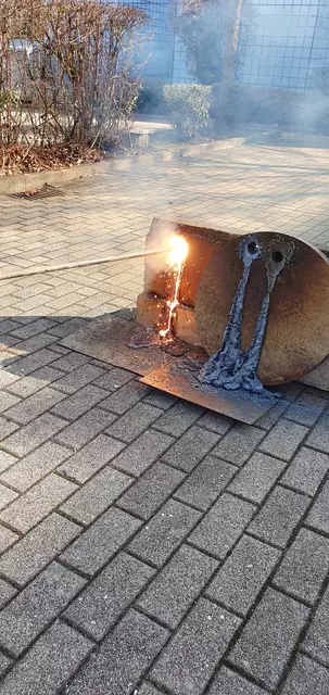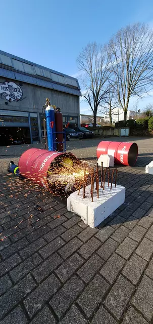Die theoretische Einführung zu Sicherheitsmaßnahmen und Arbeitsschutz beim Arbeiten mit technischen Gasen, dem Brennschneiden mit dem Schneidbrenner und Brennbohren mit einer Sauerstoffkernlanze erfolgte bereits im Vorfeld, sodass am Veranstaltungstag das praktische Abschlusstraining im Mittelpunkt stand.