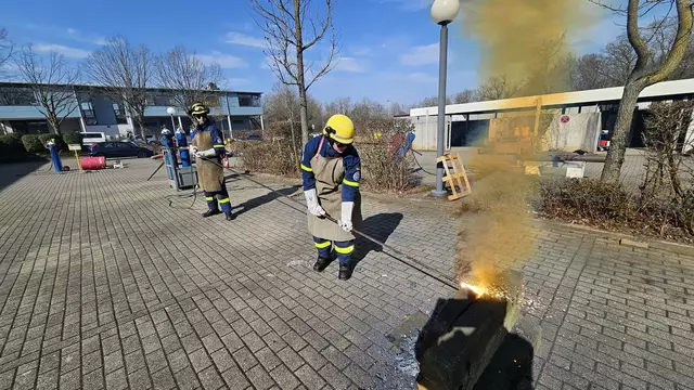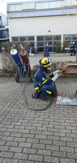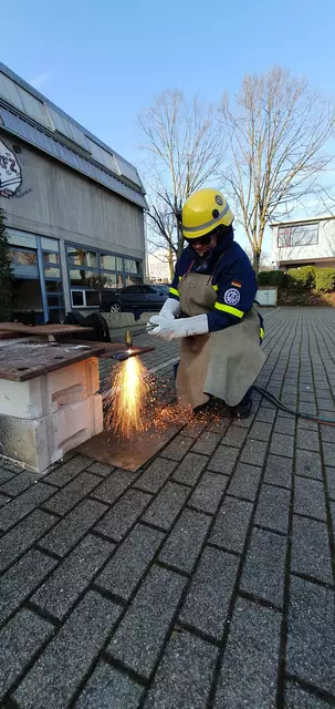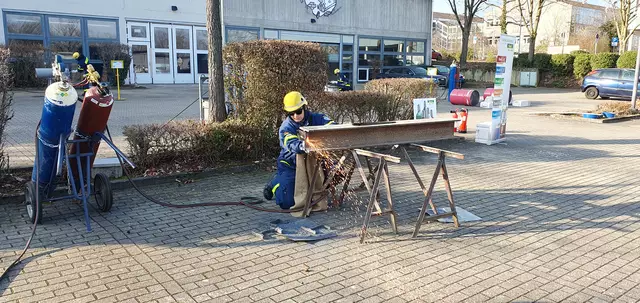 Wiesloch. Am 08. März 2025 fand an der Hubert-Sternberg-Schule (HSS) unter der Leitung von DVS-Schweißlehrer Matthias Huber erneut ein praxisnaher Brennschneidkurs für zehn Helferinnen und Helfer des THW Ortsverband Heidelberg statt. Von 8.00 bis 15.00 Uhr wurde auf dem Lehrerparkplatz der Berufsschule intensiv mit Acetylen- und Sauerstoff gearbeitet, um die Technik des Brennschneidens und Brennbohrens zu erlernen und zu perfektionieren. Eine kurze Mittagspause unterbrach das handwerkliche Training, ansonsten stand das Schneiden und Bohren im Fokus.